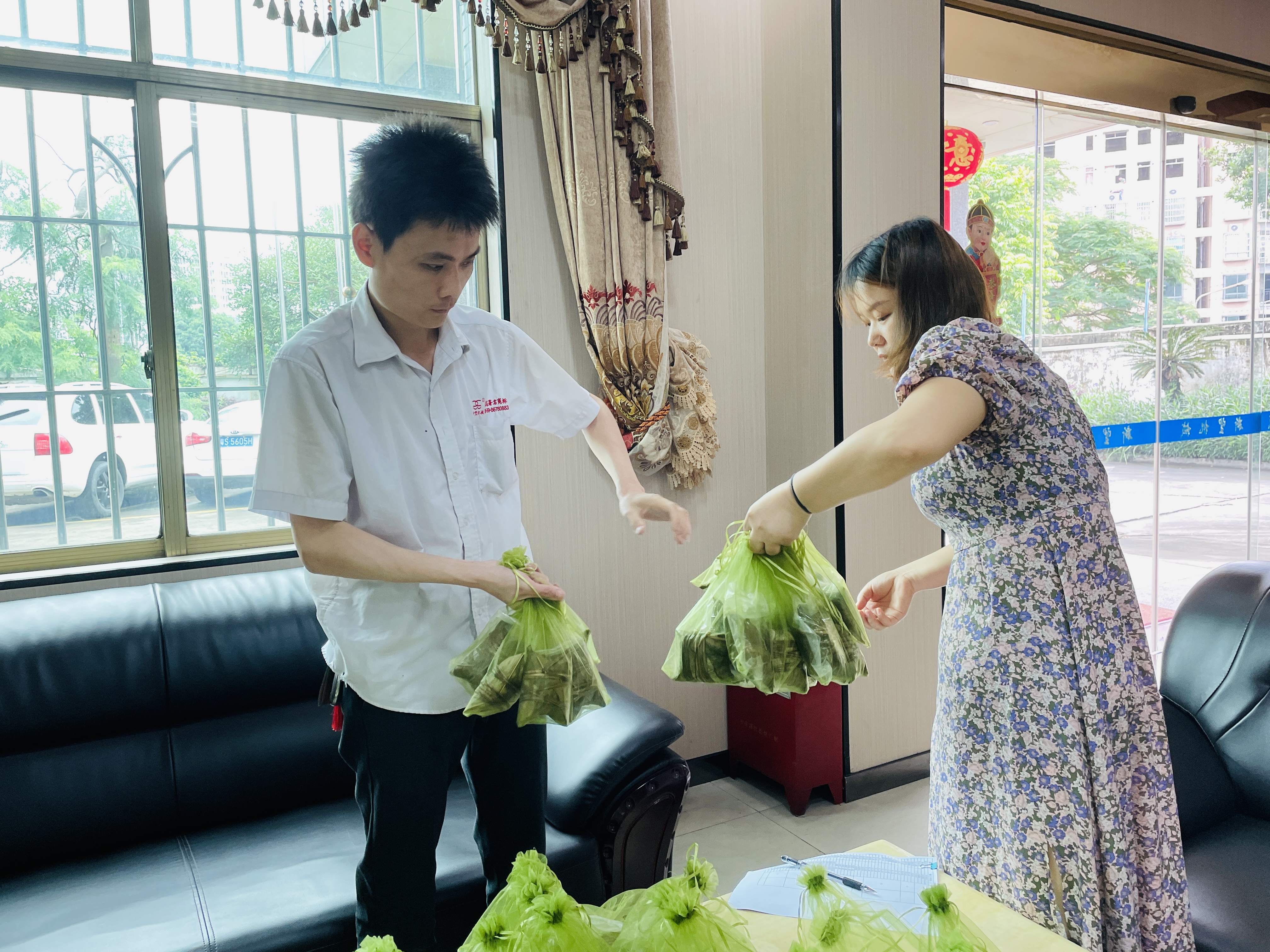 在端午節(jié)這一天新望大道為員工準(zhǔn)備了美味的粽子。我們希望通過這份小小的關(guān)愛,表達(dá)對(duì)員工的感謝和祝福。愿每一位員工在端午節(jié)假期中,健康安康,快樂幸福!